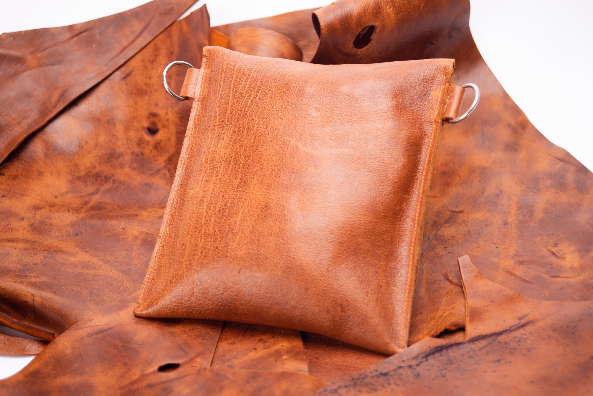 Each pouch is made from kudu leather derived from African antelope hides, with natural variations in colour, grain, and surface detail ensuring every piece is truly one of one. The design is intentionally minimal — no branding, no extra pockets — allowing the layered leather to remain the focal point.