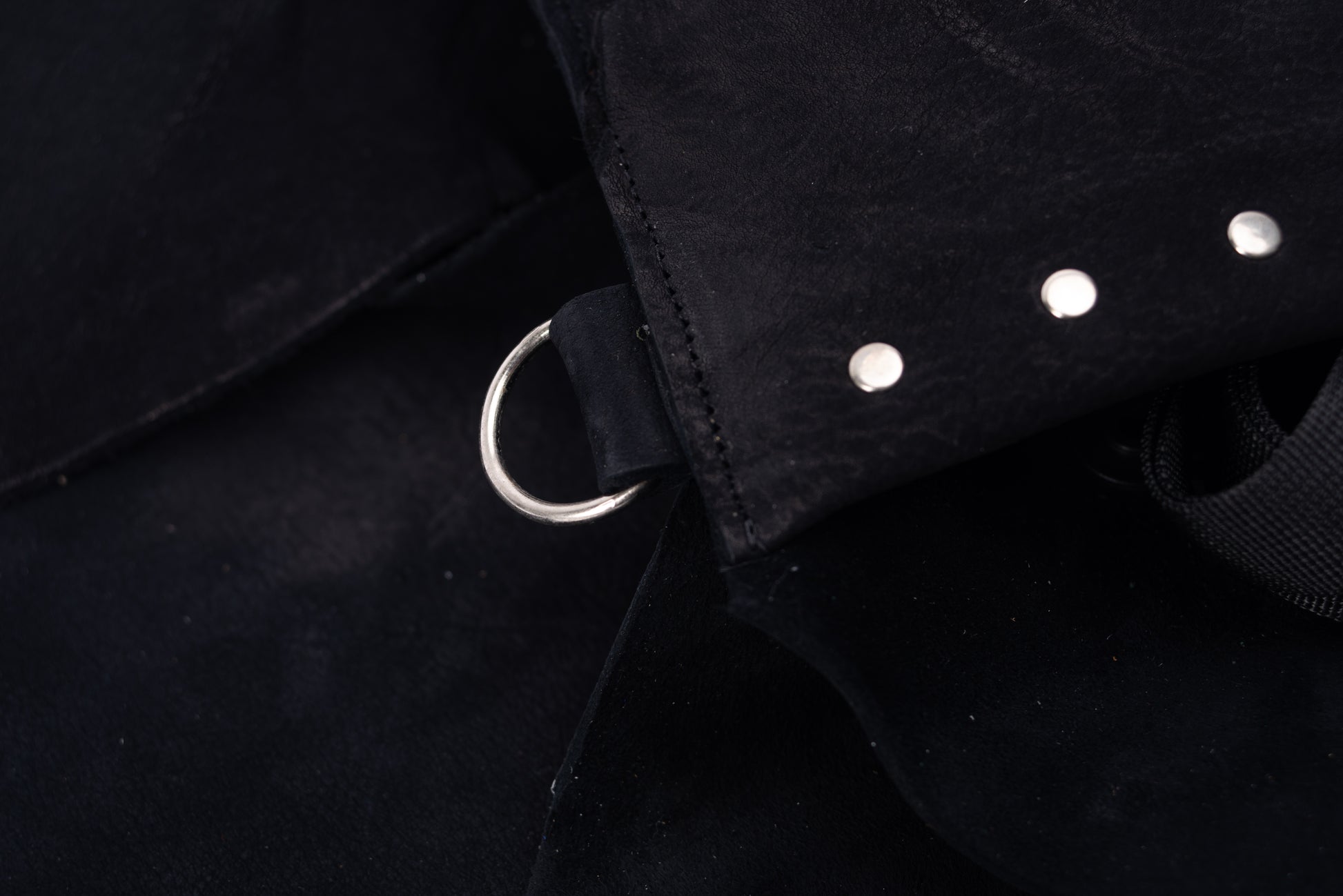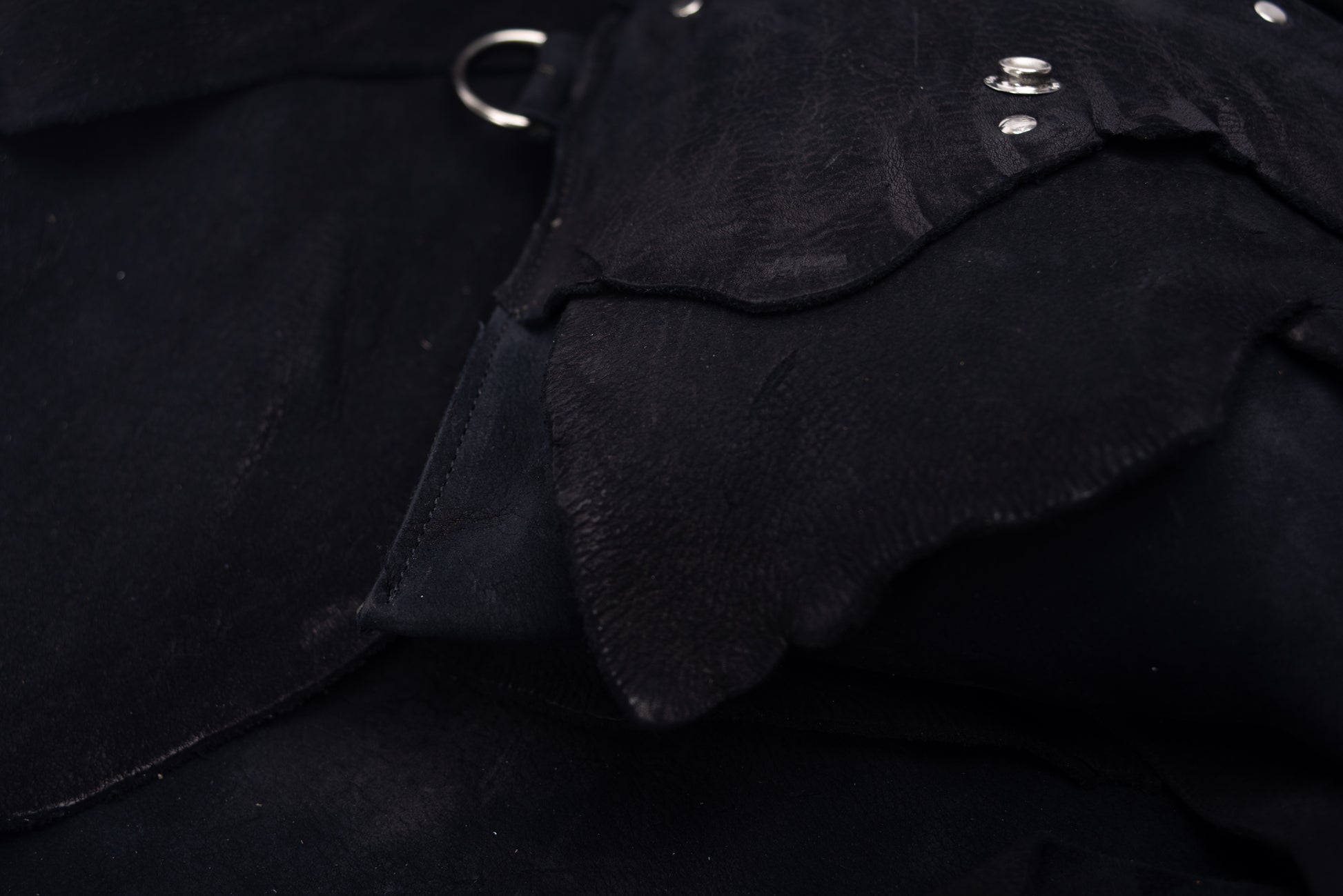 • Layered leather with riveted detailing